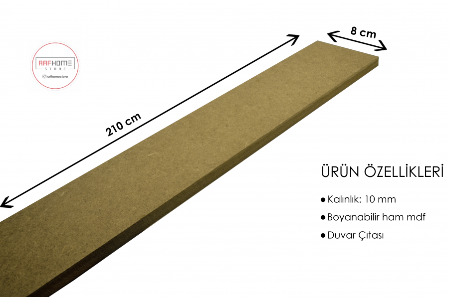 Duvar dekorasyonunuz için özel olarak tasarlanmış olan İskandinav çıta çalışması, kendin yap konsepti ile evinizi kendinizin tasarlamasına olanak sağlar. Bu ürün, 10 mm kalınlığında ve 8 cm genişliğinde, 210 cm boyunda ham MDF'den üretilmiştir ve boyanabilir özelliği sayesinde evinizin dekorasyonu için size özel bir ürün haline gelebilir.