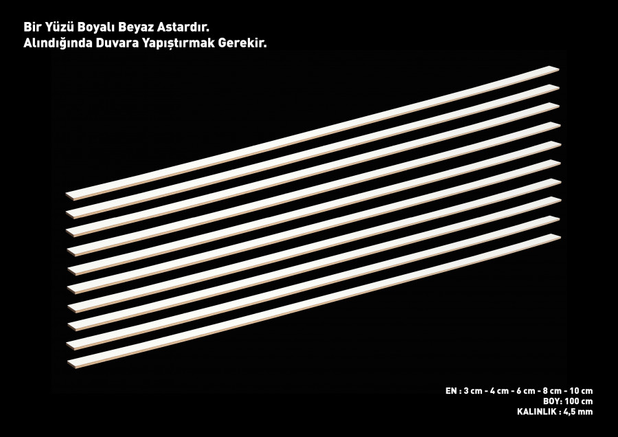 * Beyaz olarak kullanımı tavsiye edilmez üzerine bir zımpara yapıp dilediğiniz renge boyayabilirsiniz.